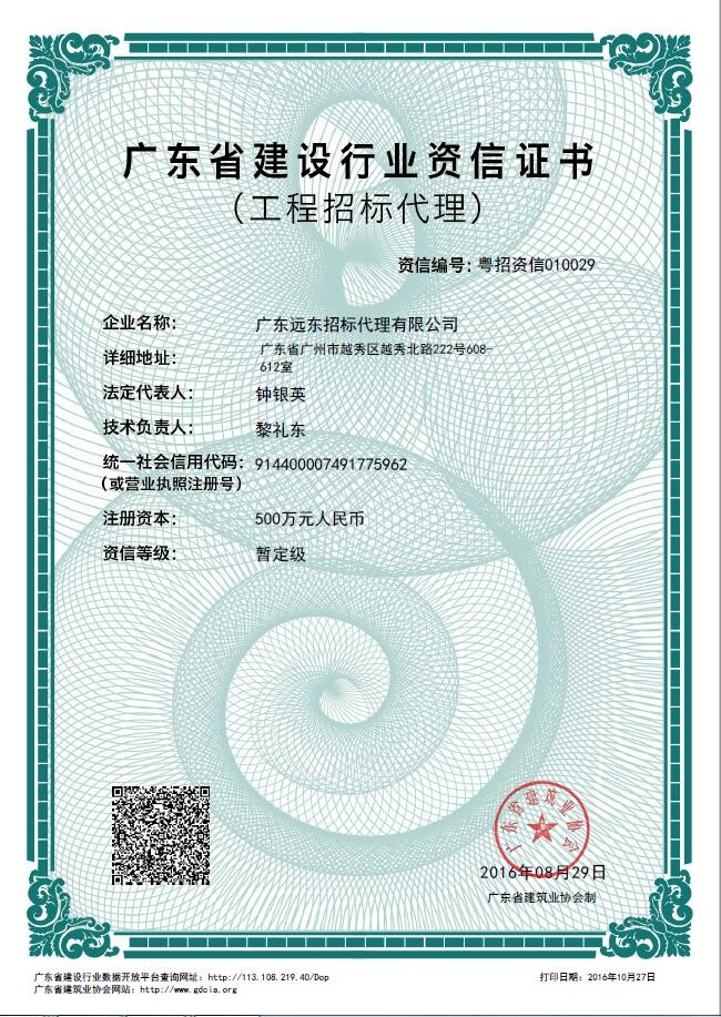廣東省建設(shè)行業(yè)資信證書暫定級(jí)